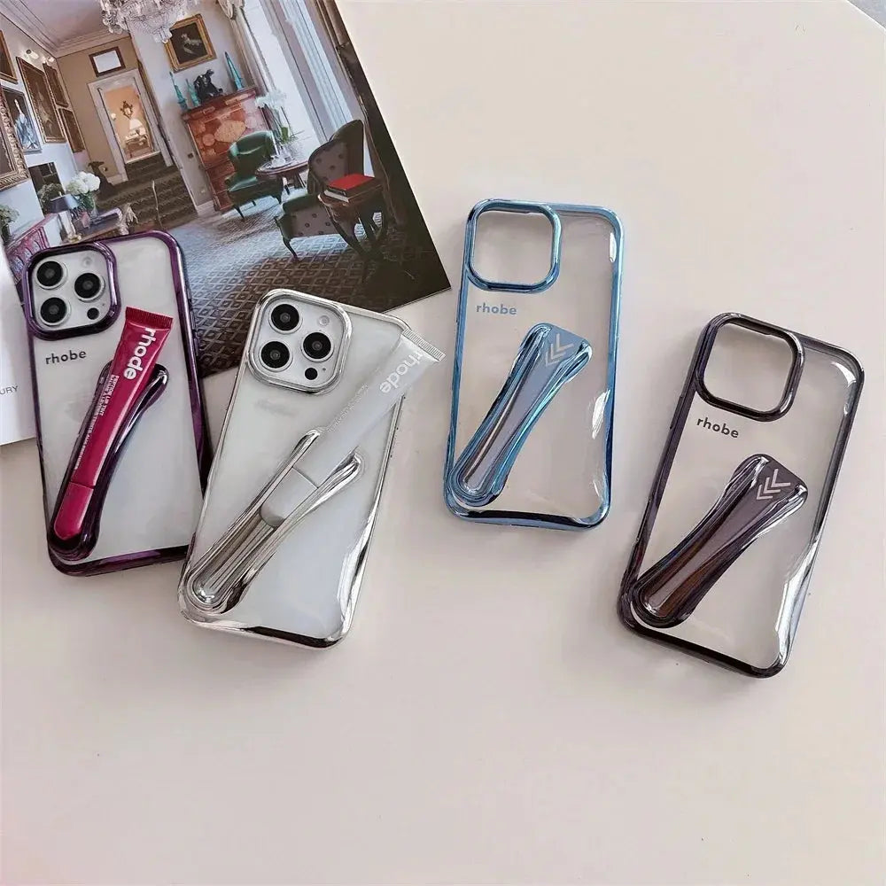 2025 New RhobeLuxury Electroplated Colored Frame INS for Rhobe Lipstick Clear Case for IPhone 16 15 14 Plus 13 12 11 Pro Max Portable Lip Gloss Holder Cover